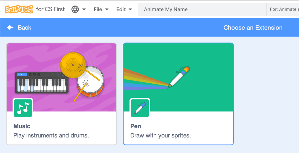 Thirdly, there isn’t currently a method within CSFirst to share projects among students, or allow them to see existing projects for remix. The solution at the moment is to create a personal Scratch account and share there. Maybe this design is intentional, to provide a closed environment and encourage original projects.