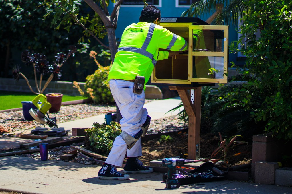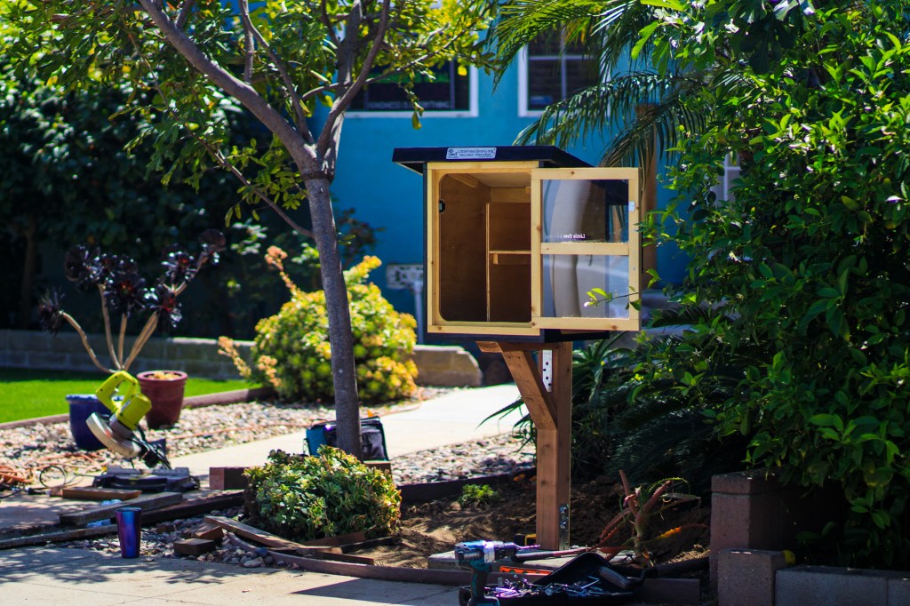 Finishing off with black hinges, handle, and magnetic door latch, the LFL just needed installation outside. I don’t consider myself an expert in this area, so I hired a skillful handyman to pour the concrete, mount the post, and fasten the library in place.