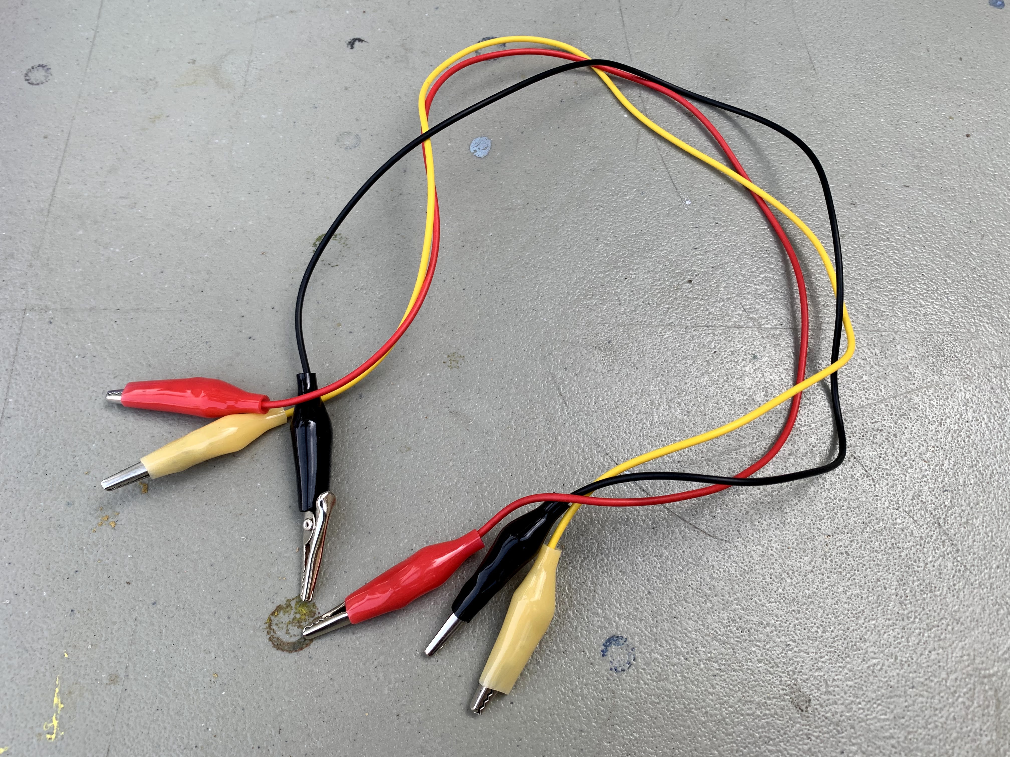 Cut the alligator clips in half so that you have open wire on one end. Use the wire strippers to remove about a quarter of an inch of insulation. I chose red, yellow, and black alligator clips to make it easy for students to learn which wire connects to which terminal.