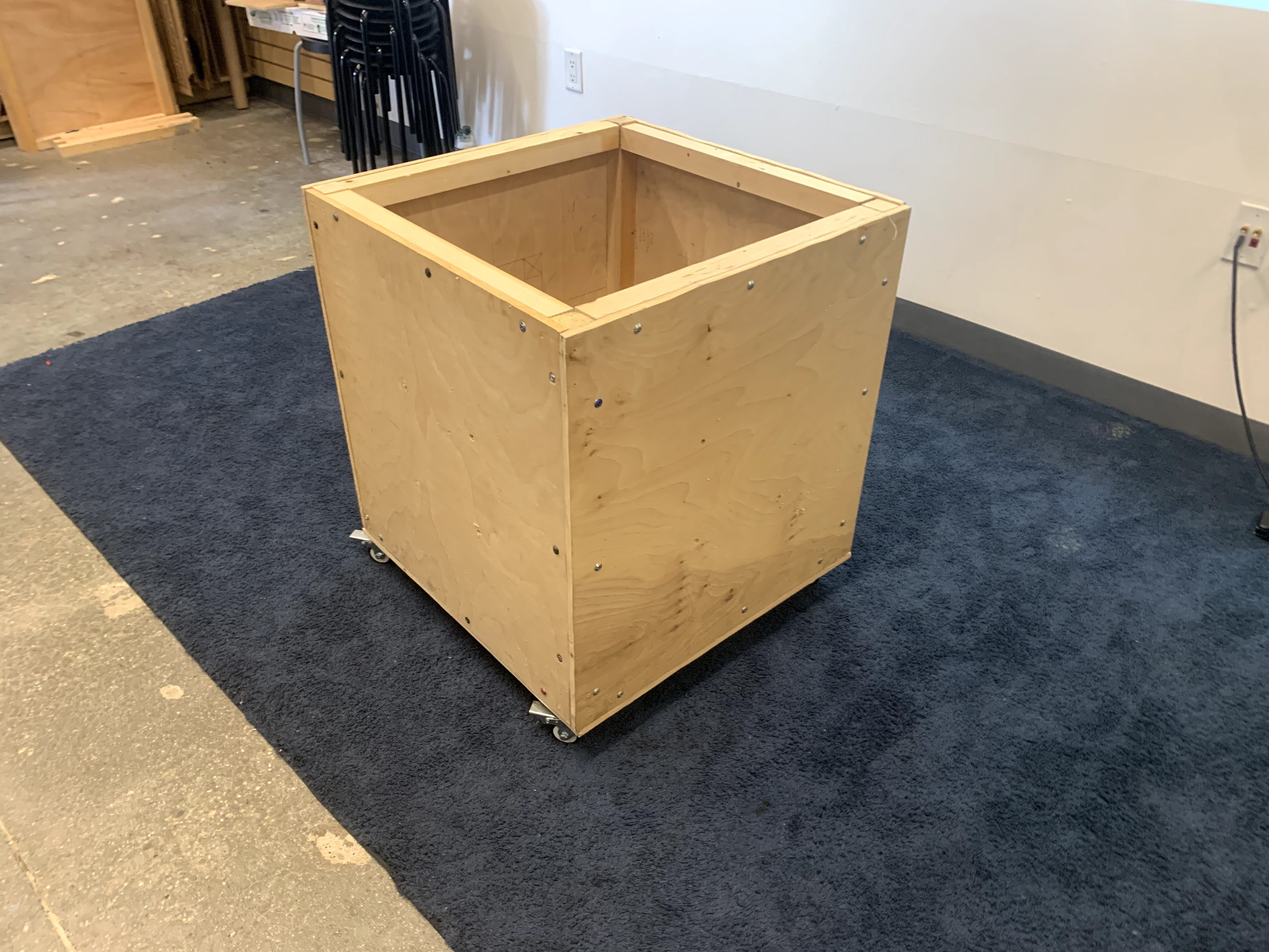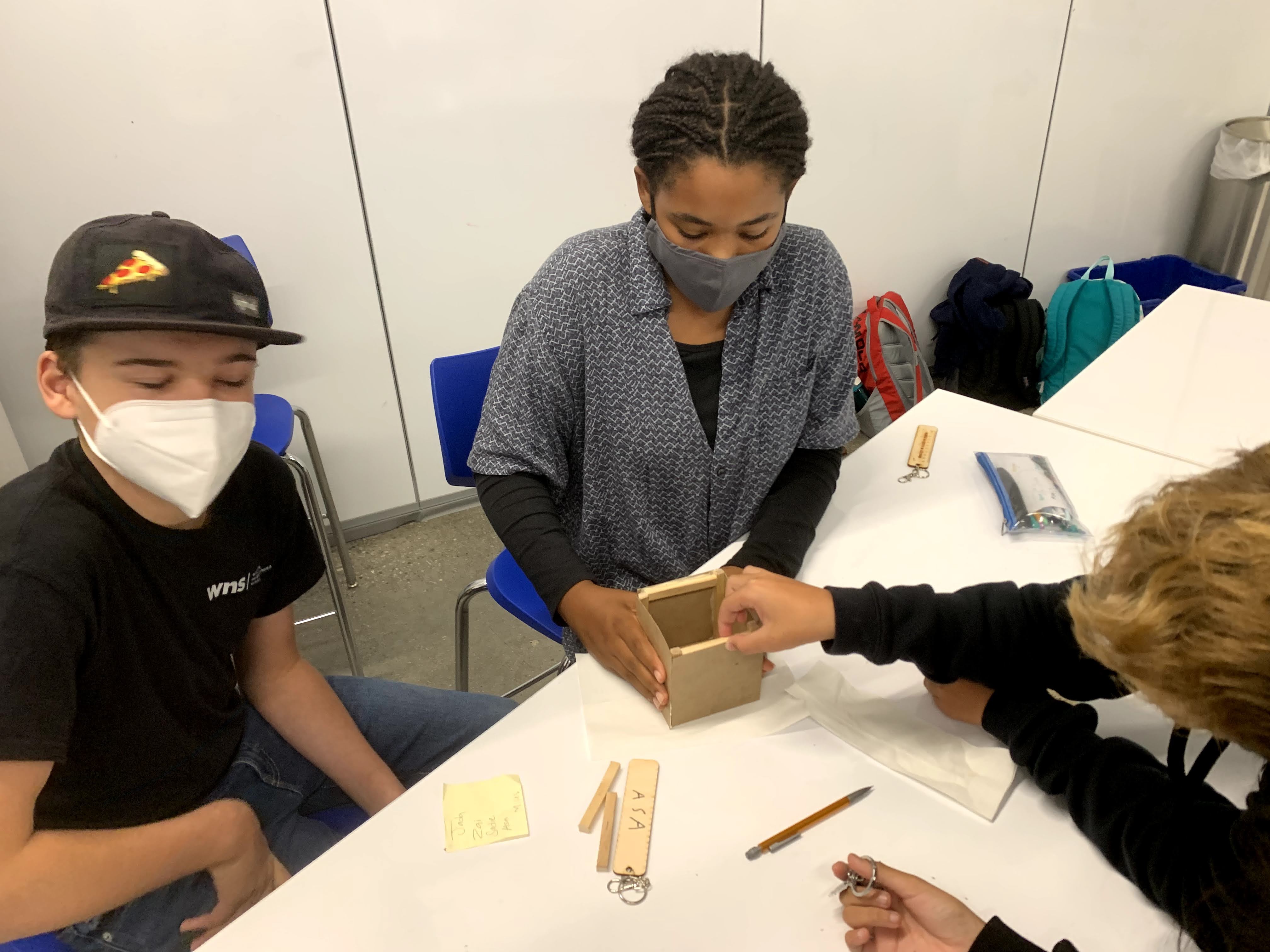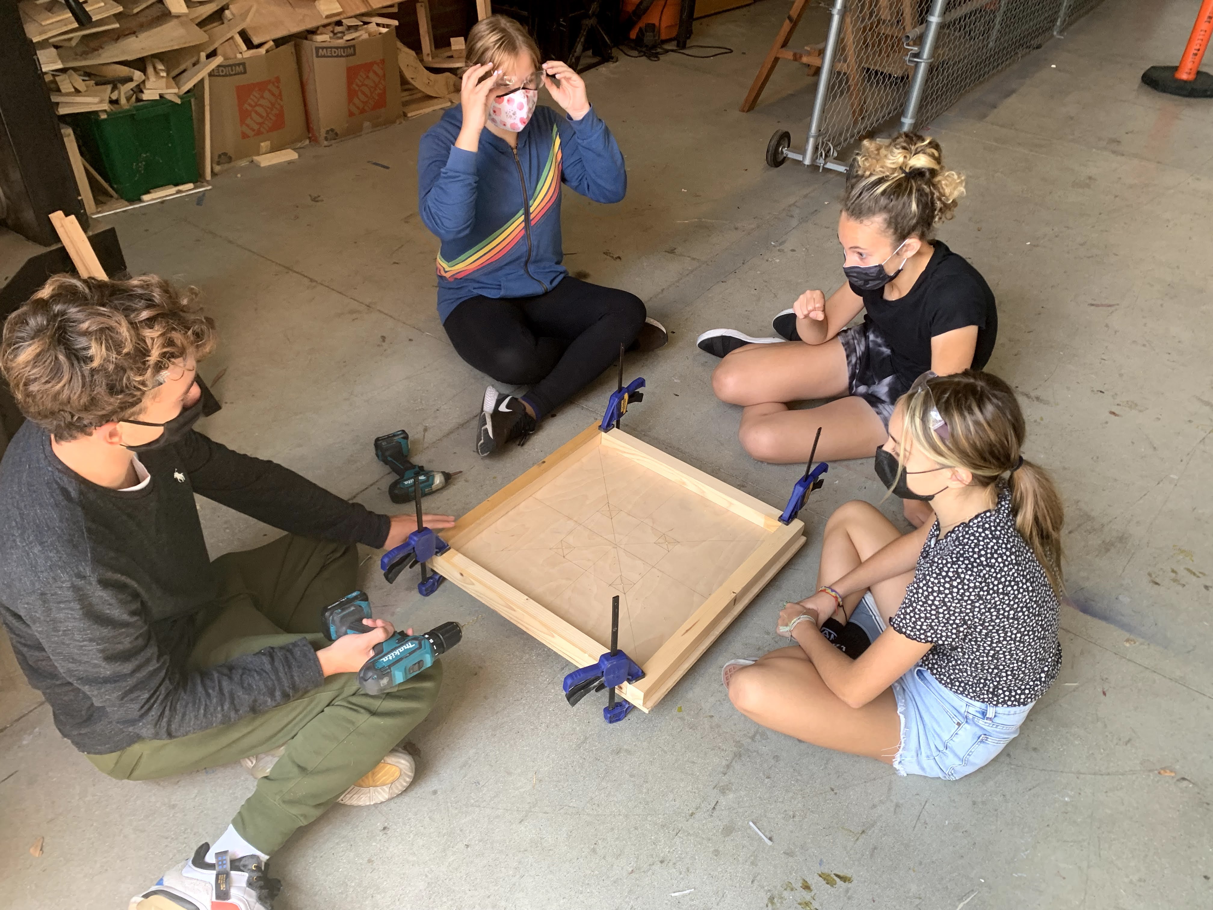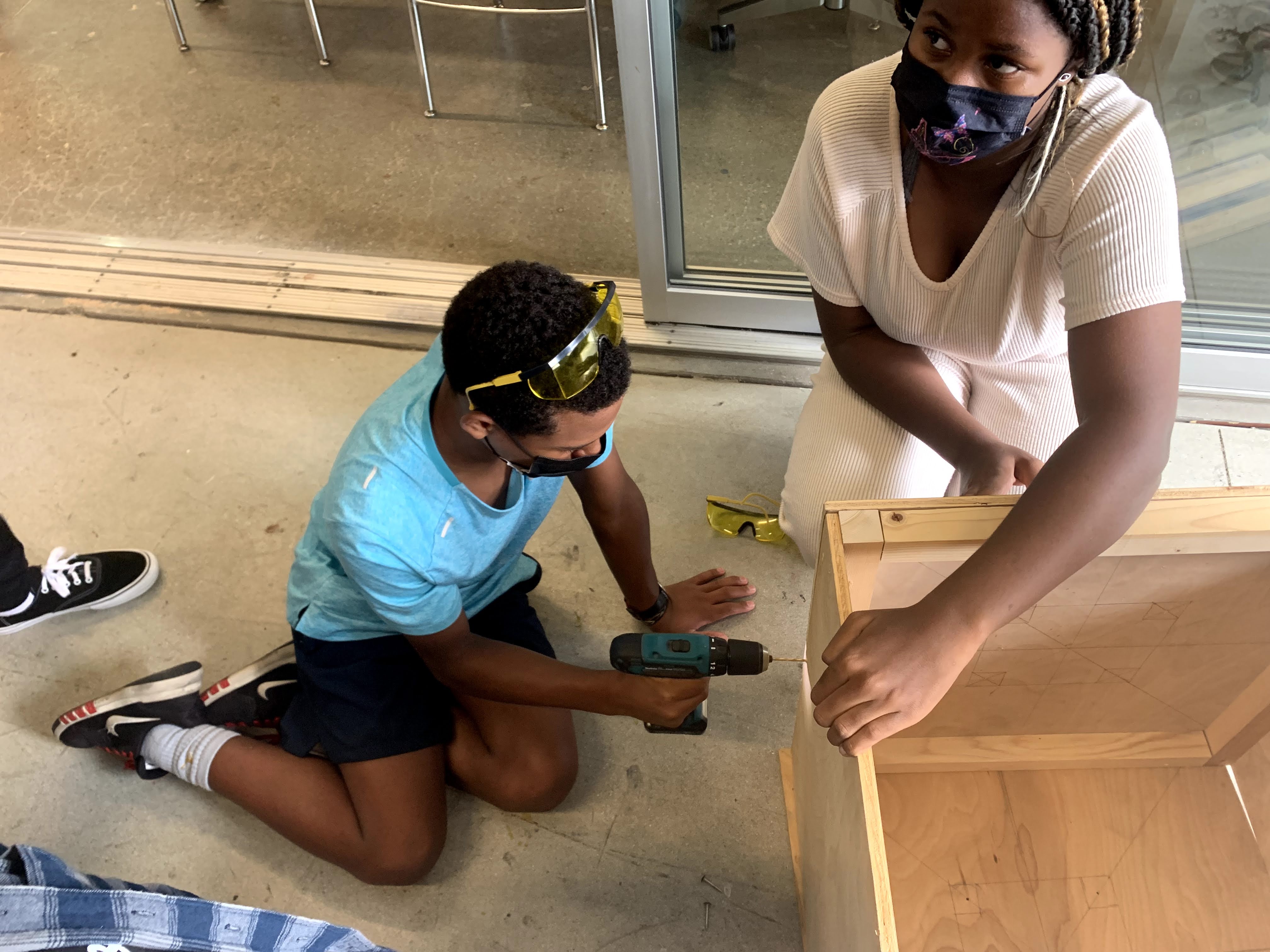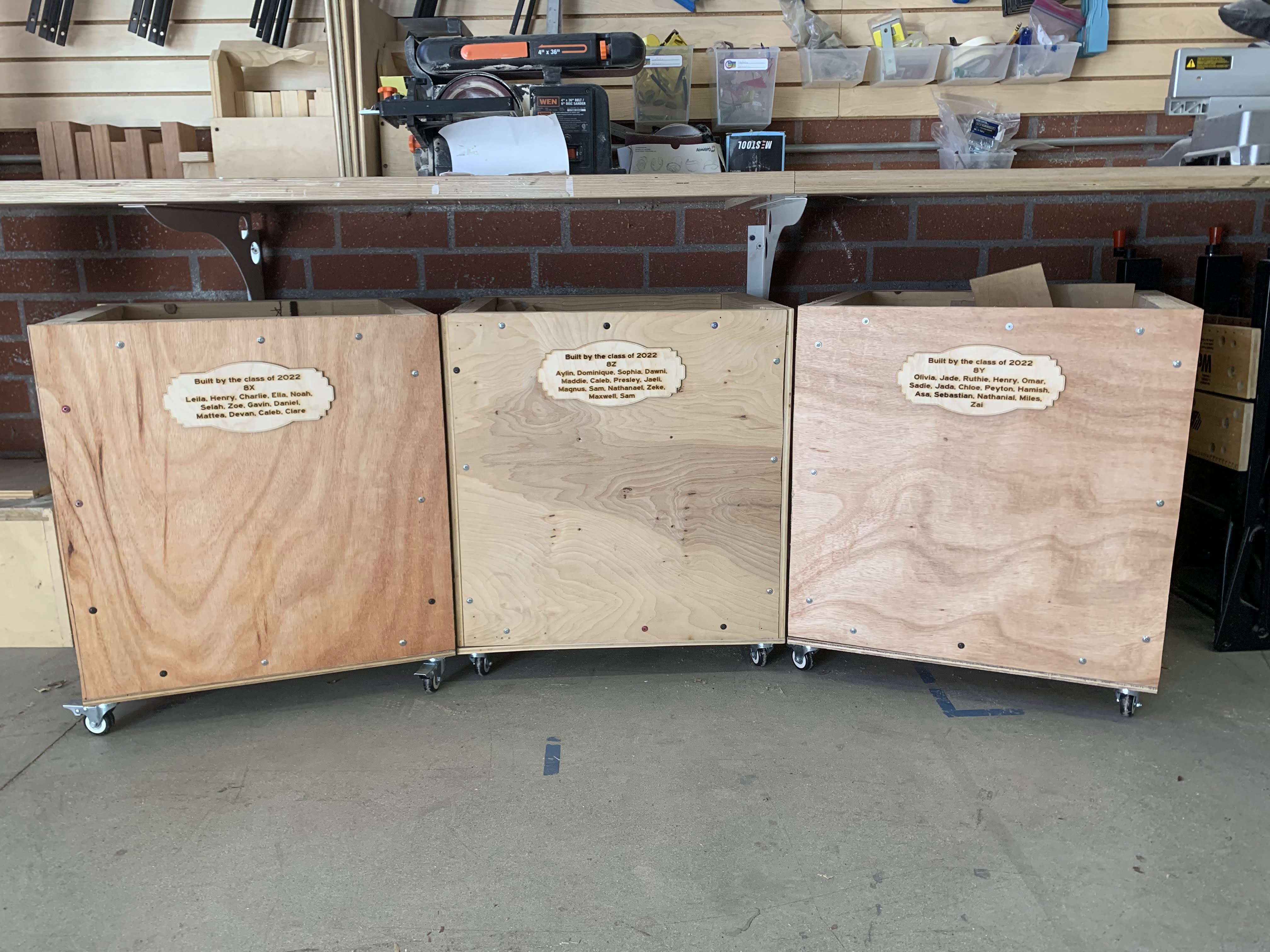 We moved from the prototype to constructing a real-world storage bin for our Maker Court, training our students in the safe and proper use of each of the power tools. They also discovered various types of wood, effective clamping techniques, and how to create a cut list.