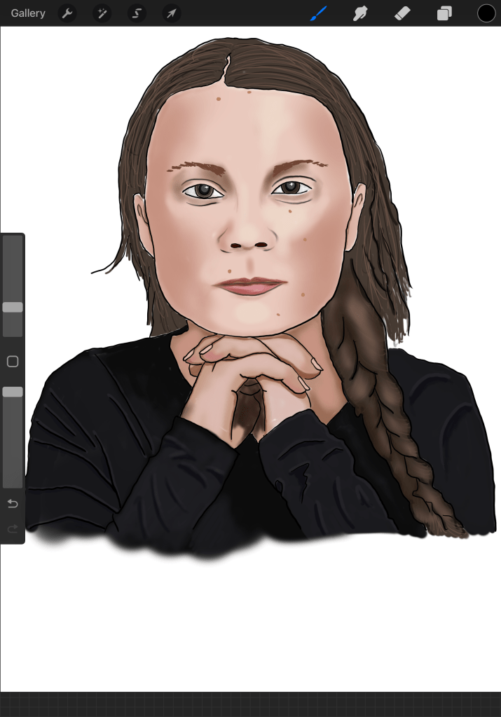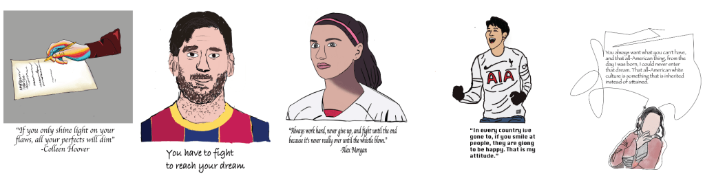 Once students were satisfied with their designs in Procreate, they exported them into Adobe Illustrator to add text, such as an inspirational quote from the person. They also added outlines if they wished to cut their portrait and quote out in a particular shape. This move to Illustrator allowed them to fine-tune their designs and ensure all the elements were in place.